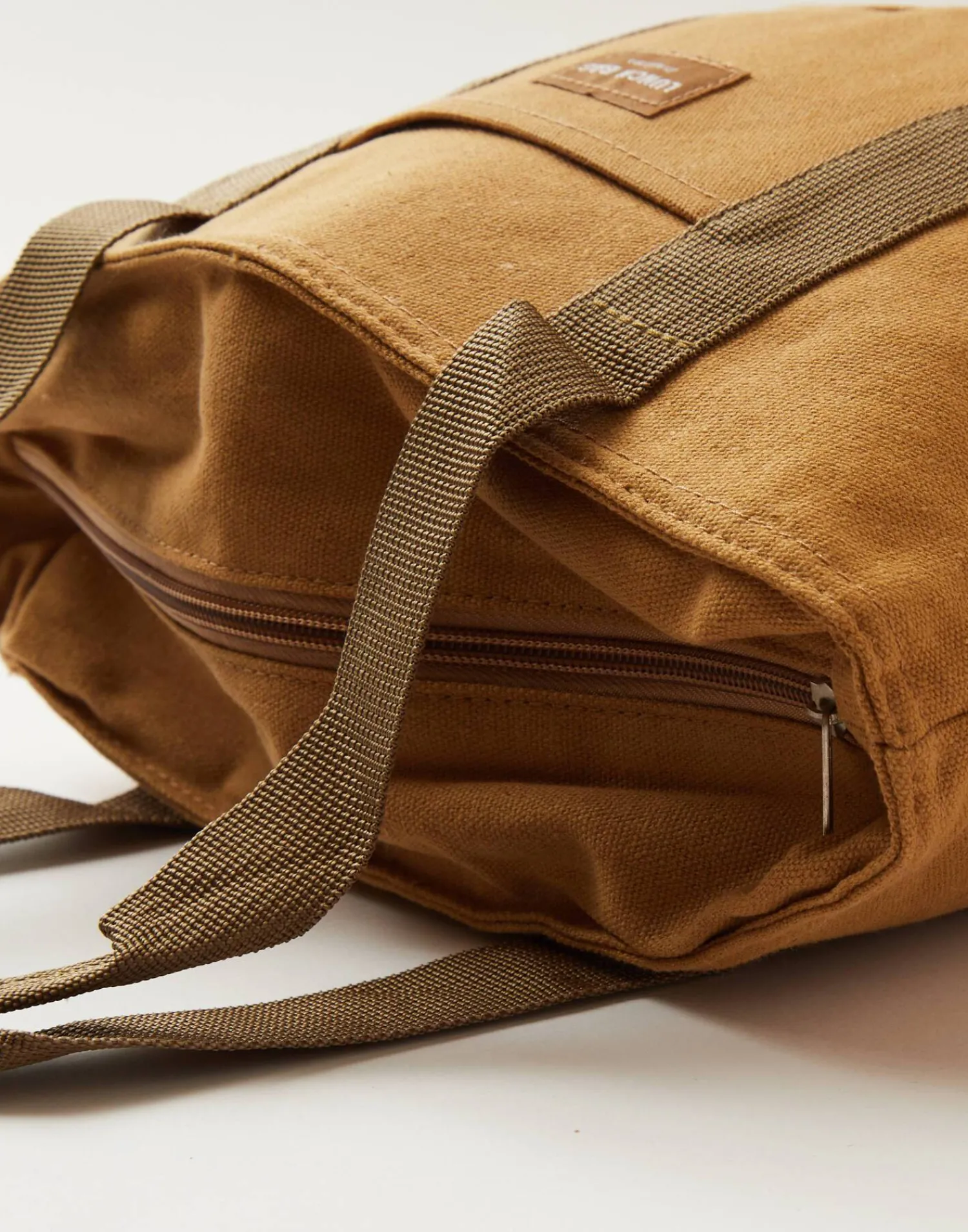 Bolsa para transportar comida, con cierre de cremallera en la parte superior y dos asas cortas.