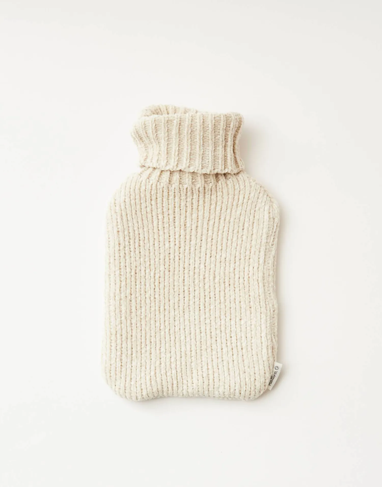 Botella de agua caliente con capacidad de 2 litros y funda de punto. Tu aliada para las frías noches de invierno o para calmar dolores.