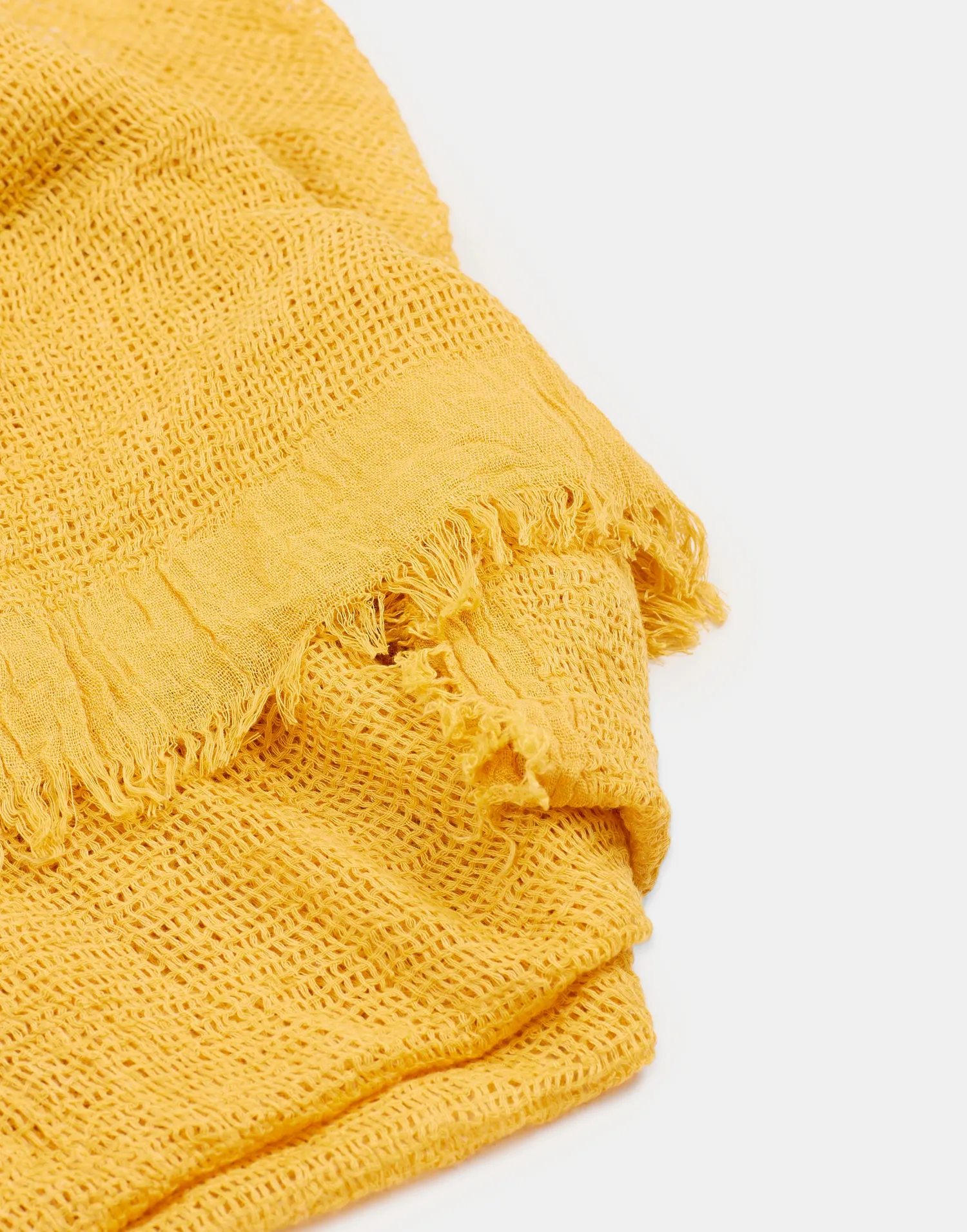 Pañuelo de punto con terminaciones deshilachadas.