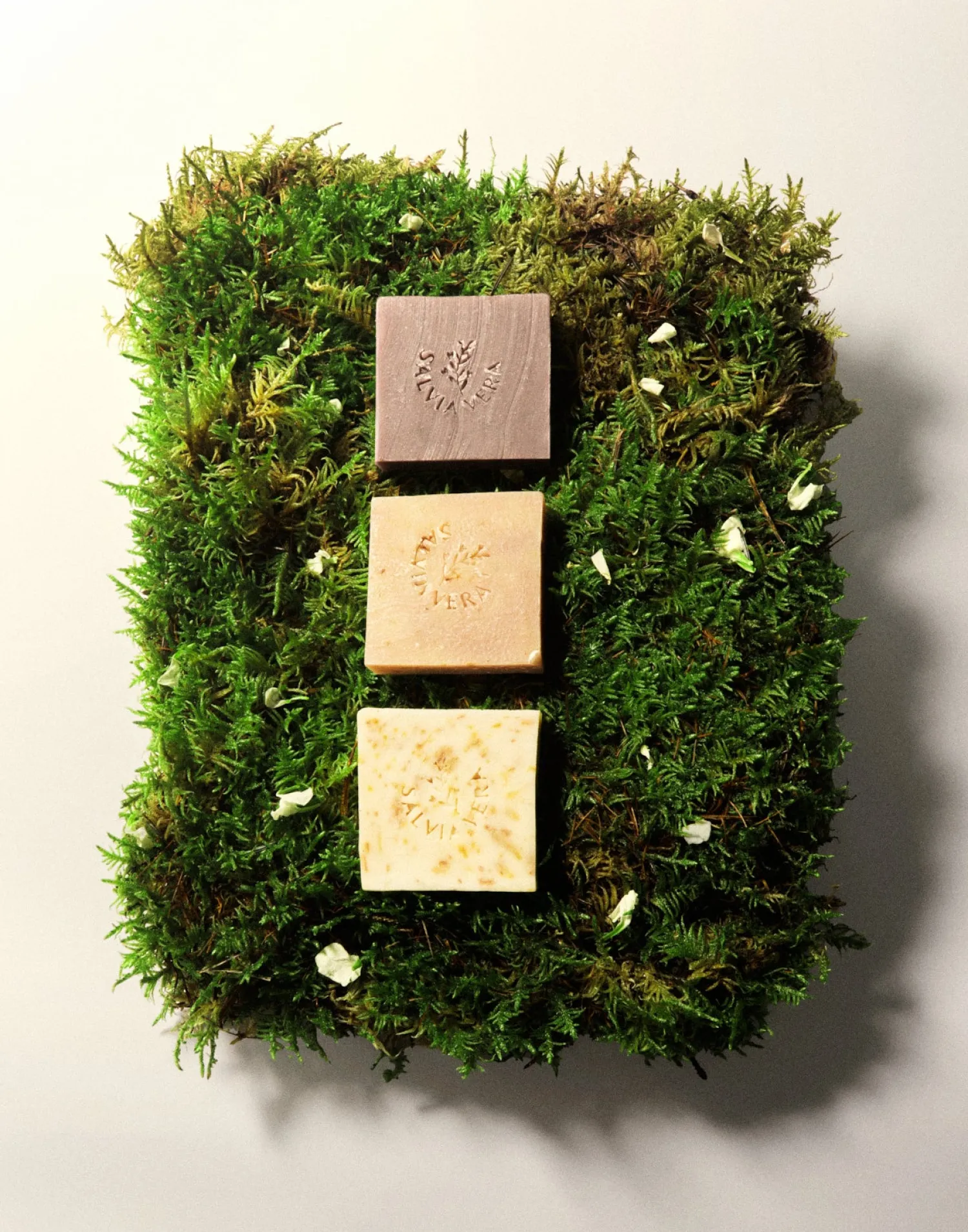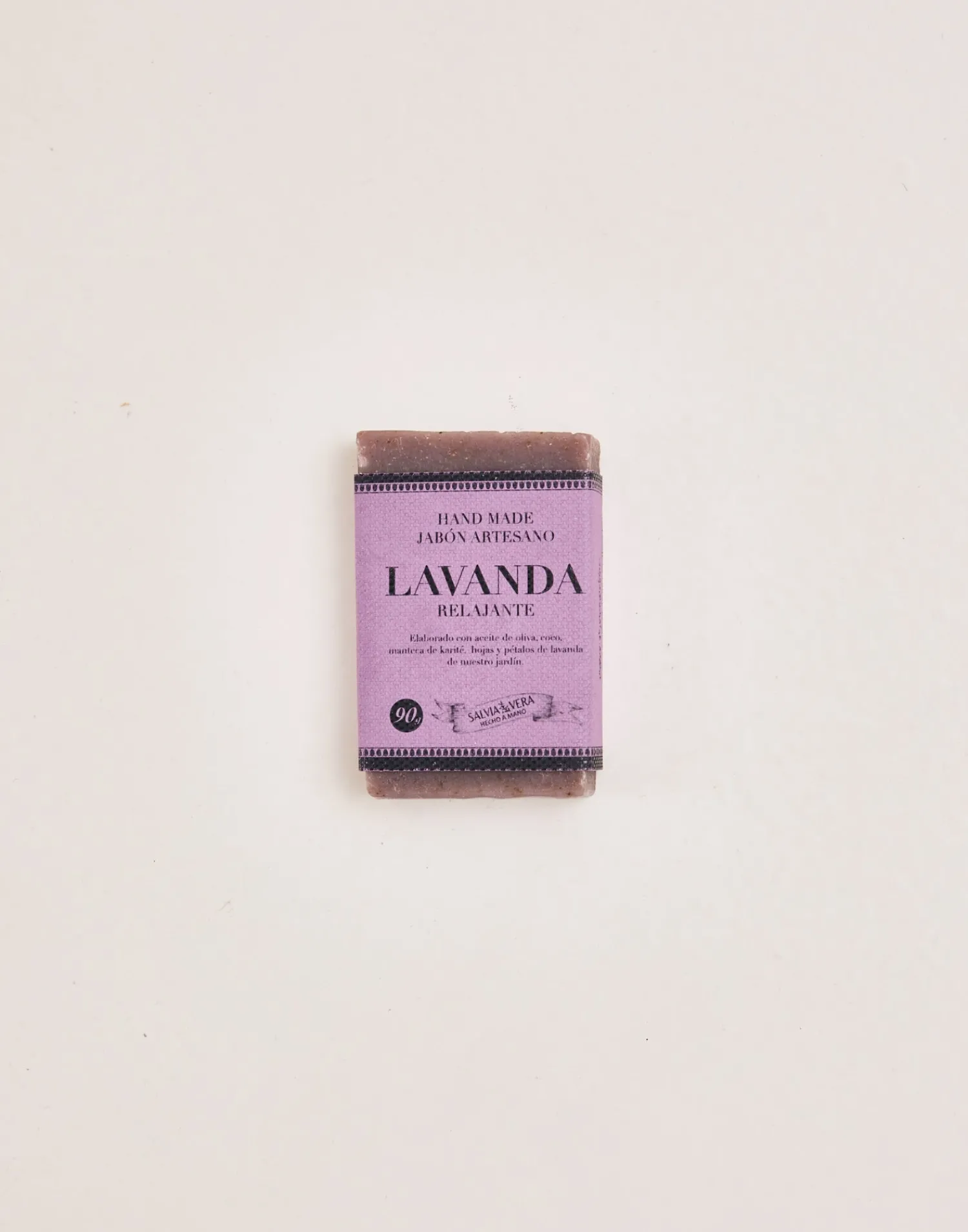 Lavanda: idóneo para pieles castigadas. Ecológico, fabricado artesanalmente mediante procesos en frío, con arcillas naturales, flores y hojas de lavanda de su huerta, desecadas y micronizadas. Tiene propiedades nutritivas y regenerantes con un toque de exfoliación.