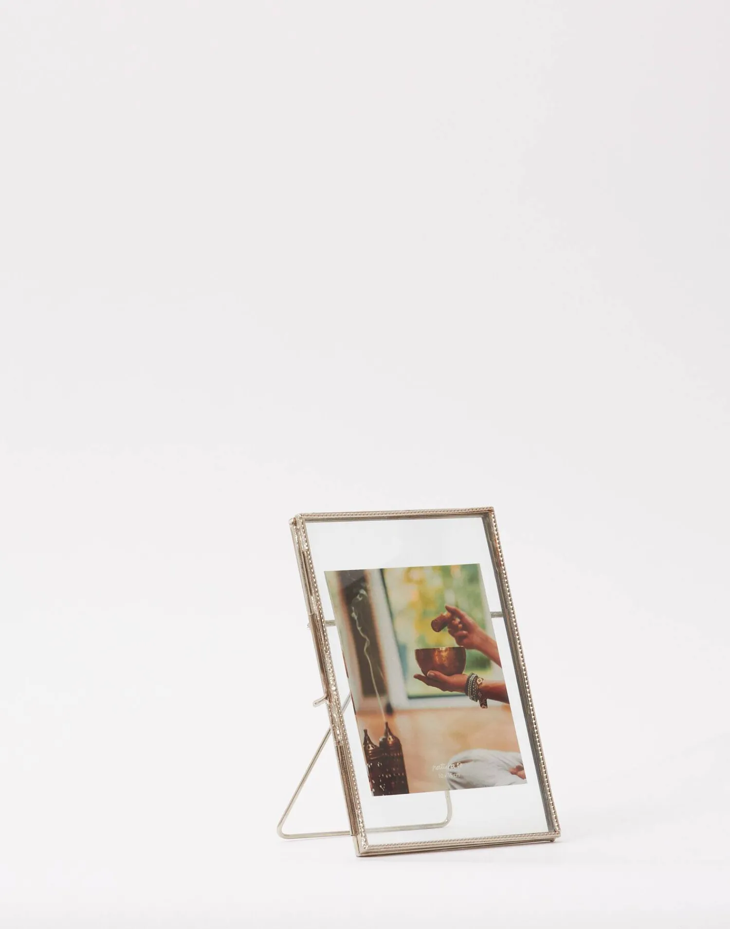 Marco de acero con pie en la parte trasera. Para fotos de 13×18 cm y de menor tamaño.