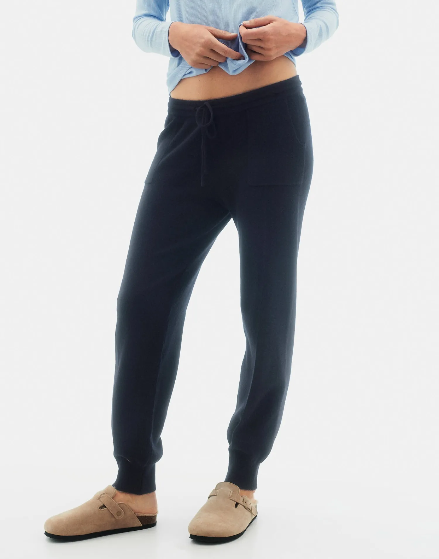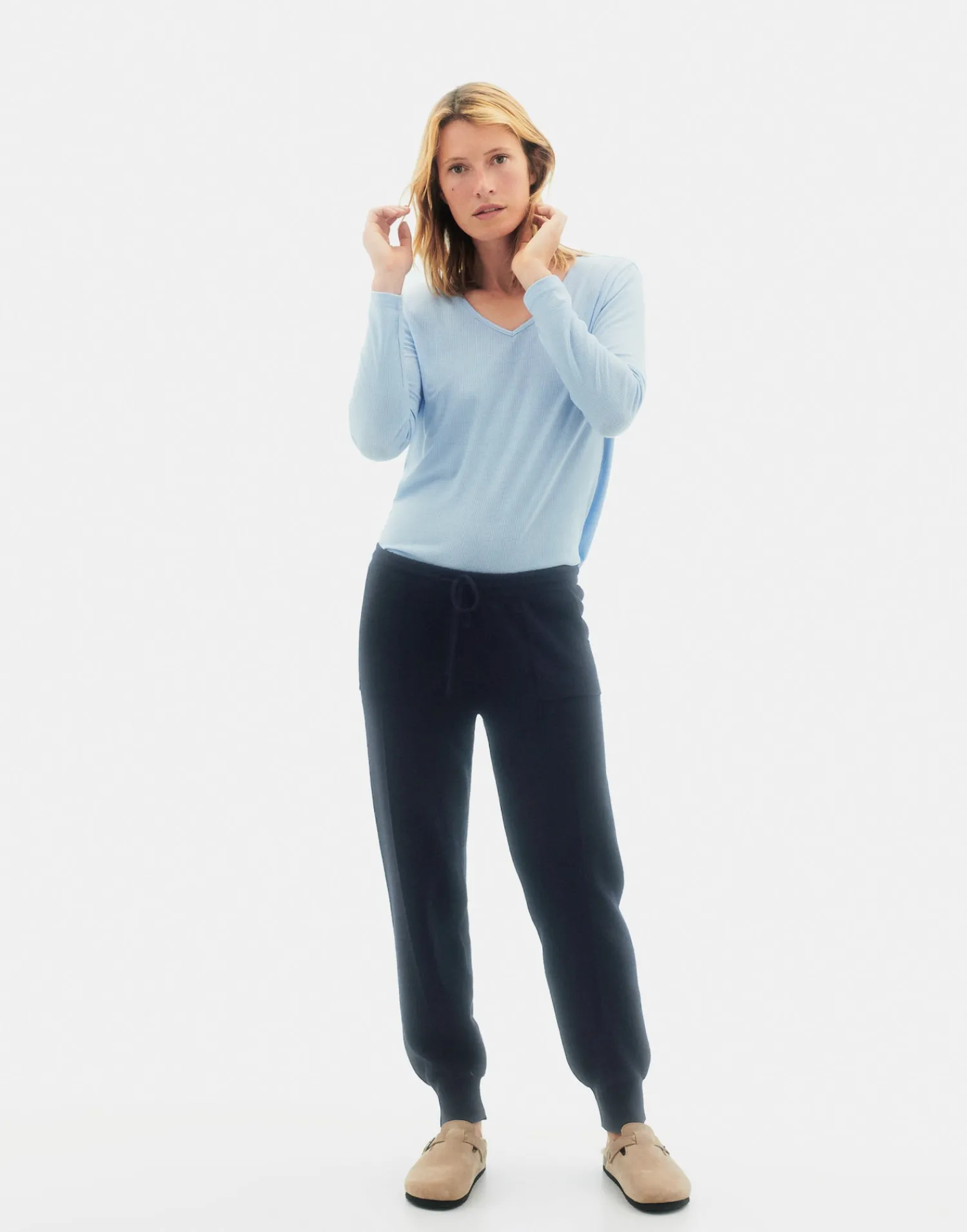 Pantalón largo de punto estilo jogger, con bolsillos de plastrón en la parte frontal, cintura elástica ajustable con cordón y bajo acabado en puño.