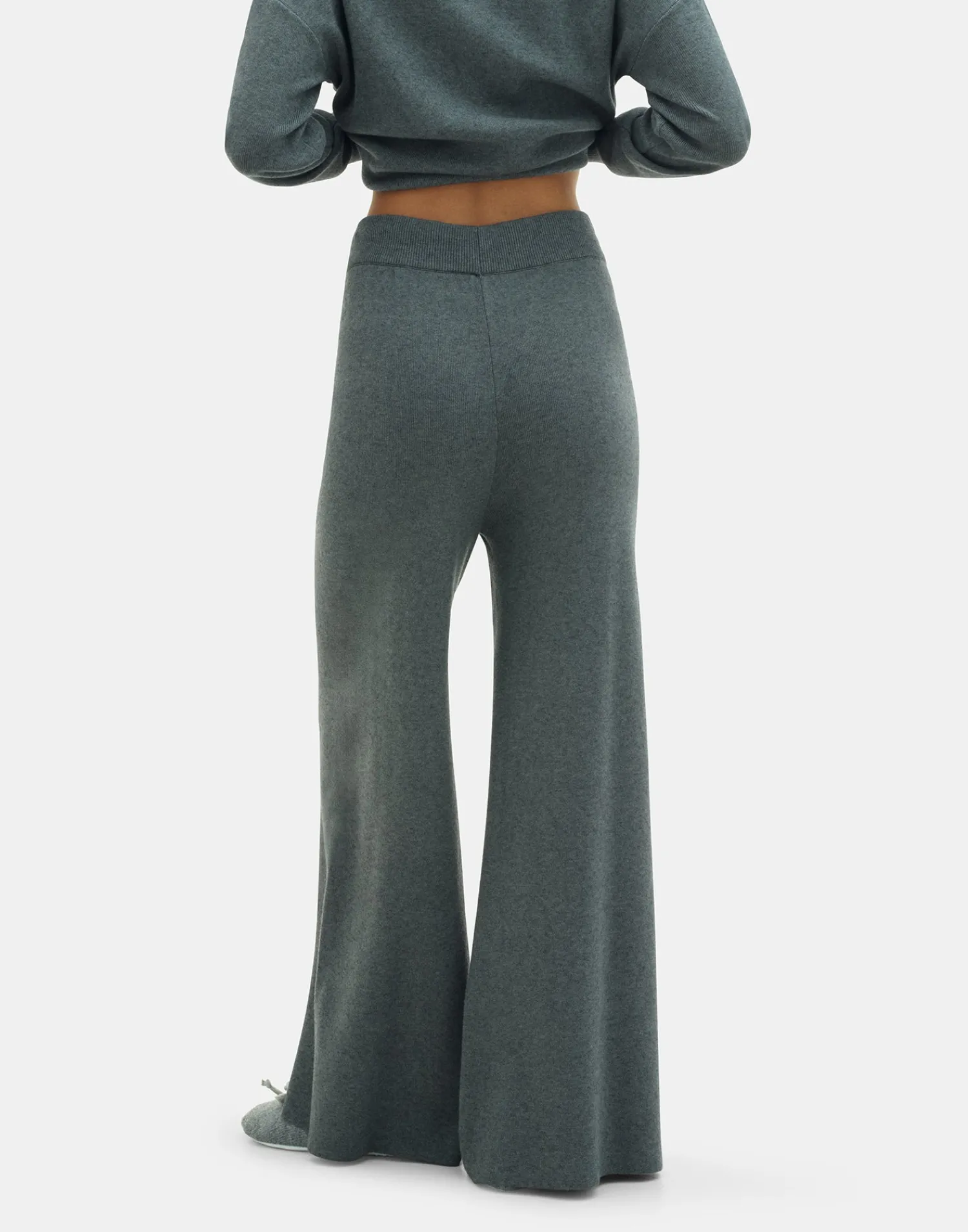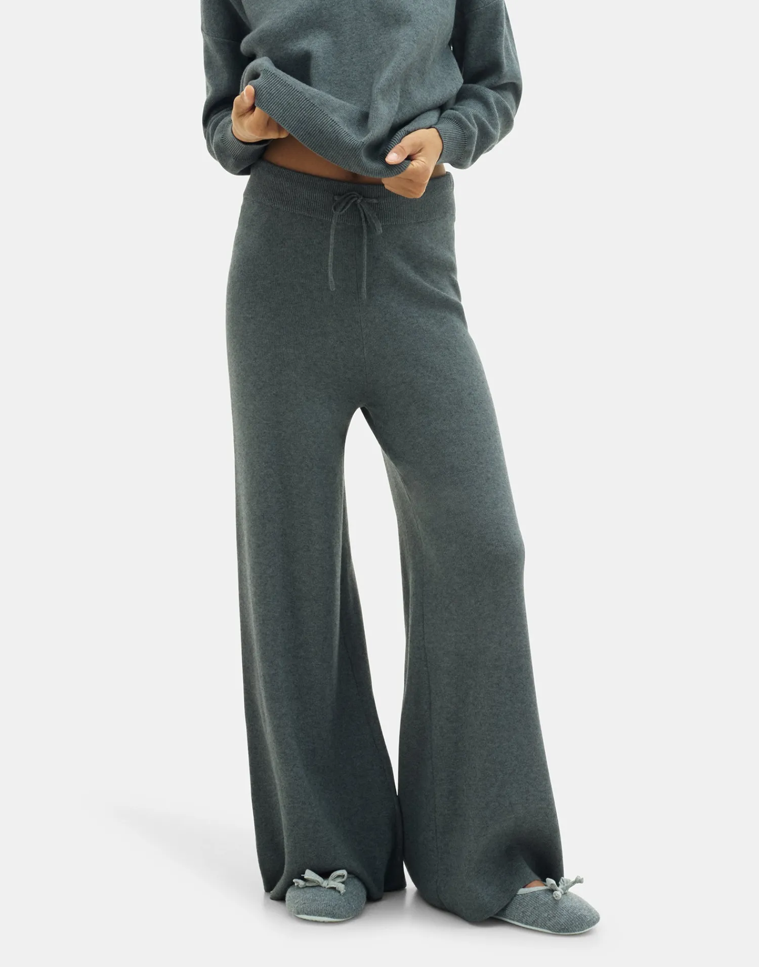 Pantalón de punto con pernera ancha y cintura elástica ajustable mediante lazo.