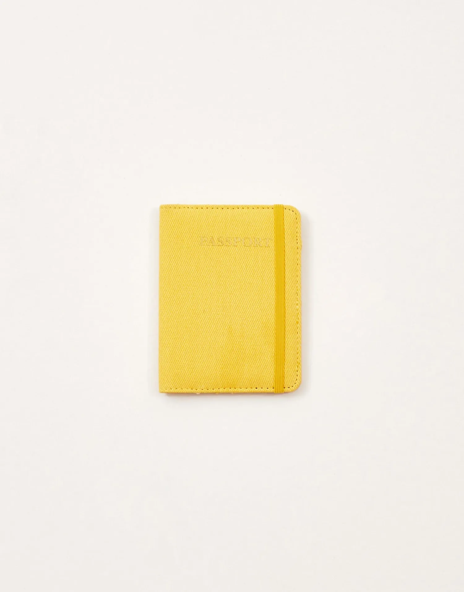 Pasaportera de algodón estampada, con espacio para colocar las cubiertas de tu pasaporte y llevarlo a salvo. Acabado con goma elástica.