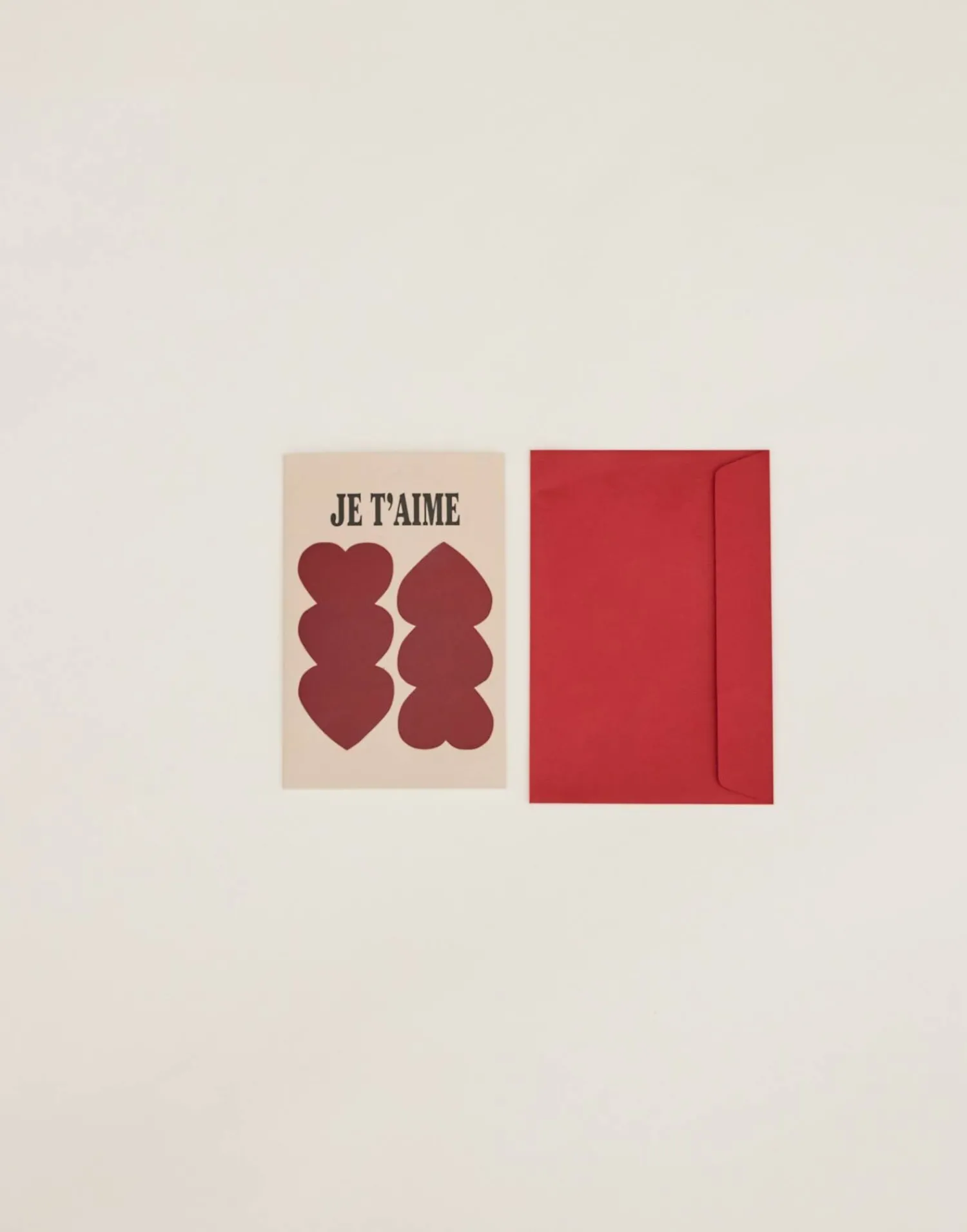 Postal con ilustraciones y texto en la parte frontal. Incluye sobre.