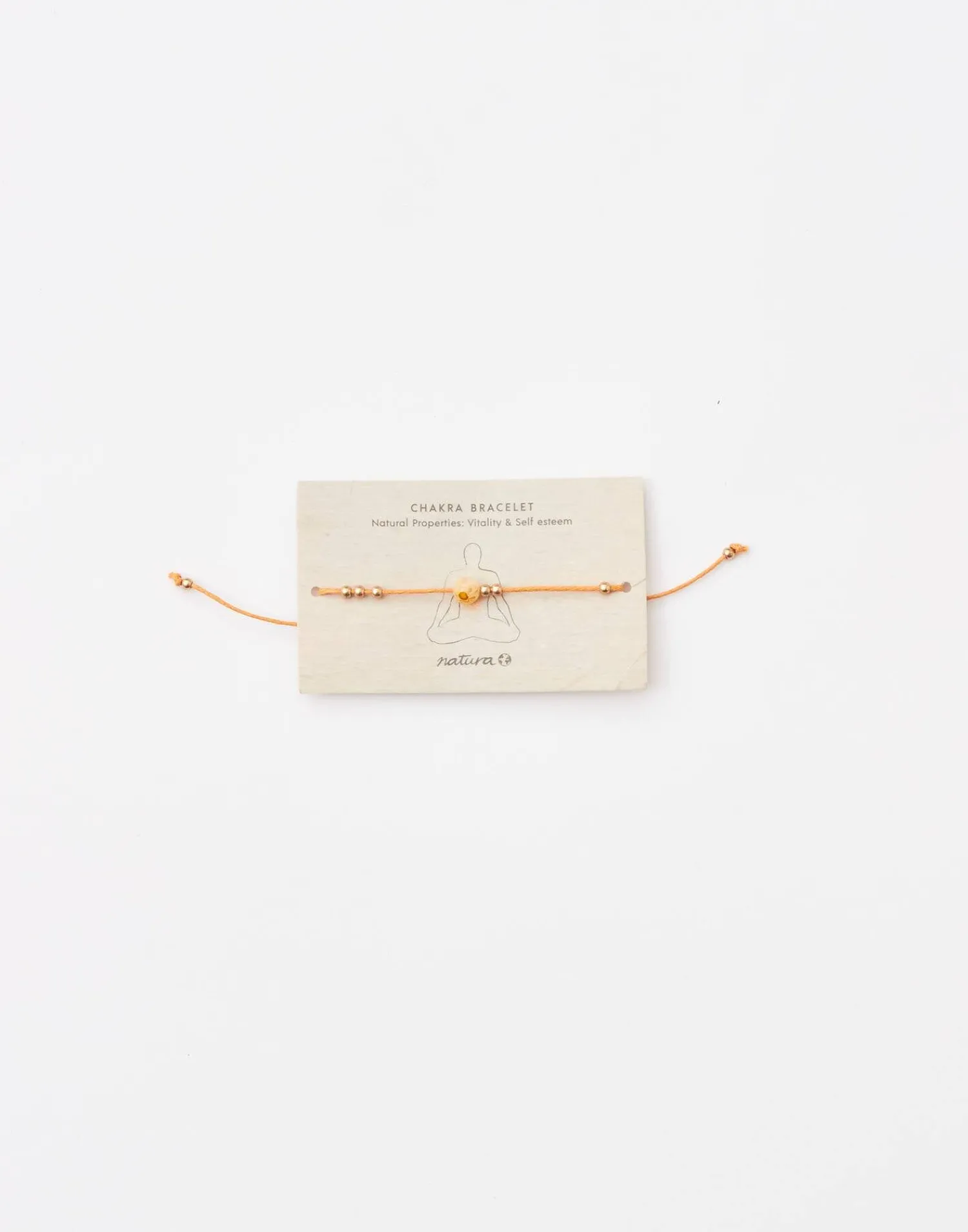 Pulsera de hilo con cuenta del color correspondiente a cada chakra y detalle de flor. Cierre de nudo corredizo.