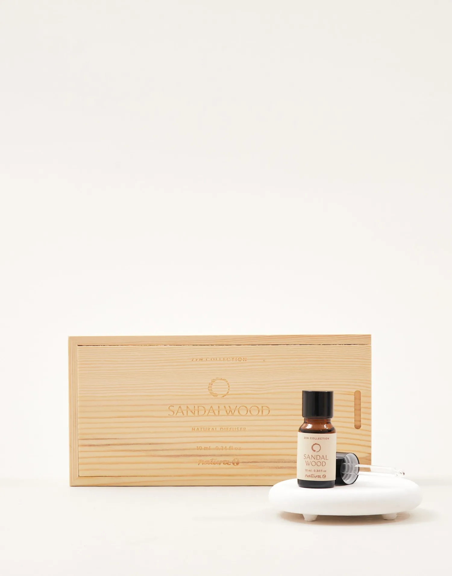 Set ambientador compuesto por difusor de piedra cerámica y aceite esencial con gotero de 10 ml.