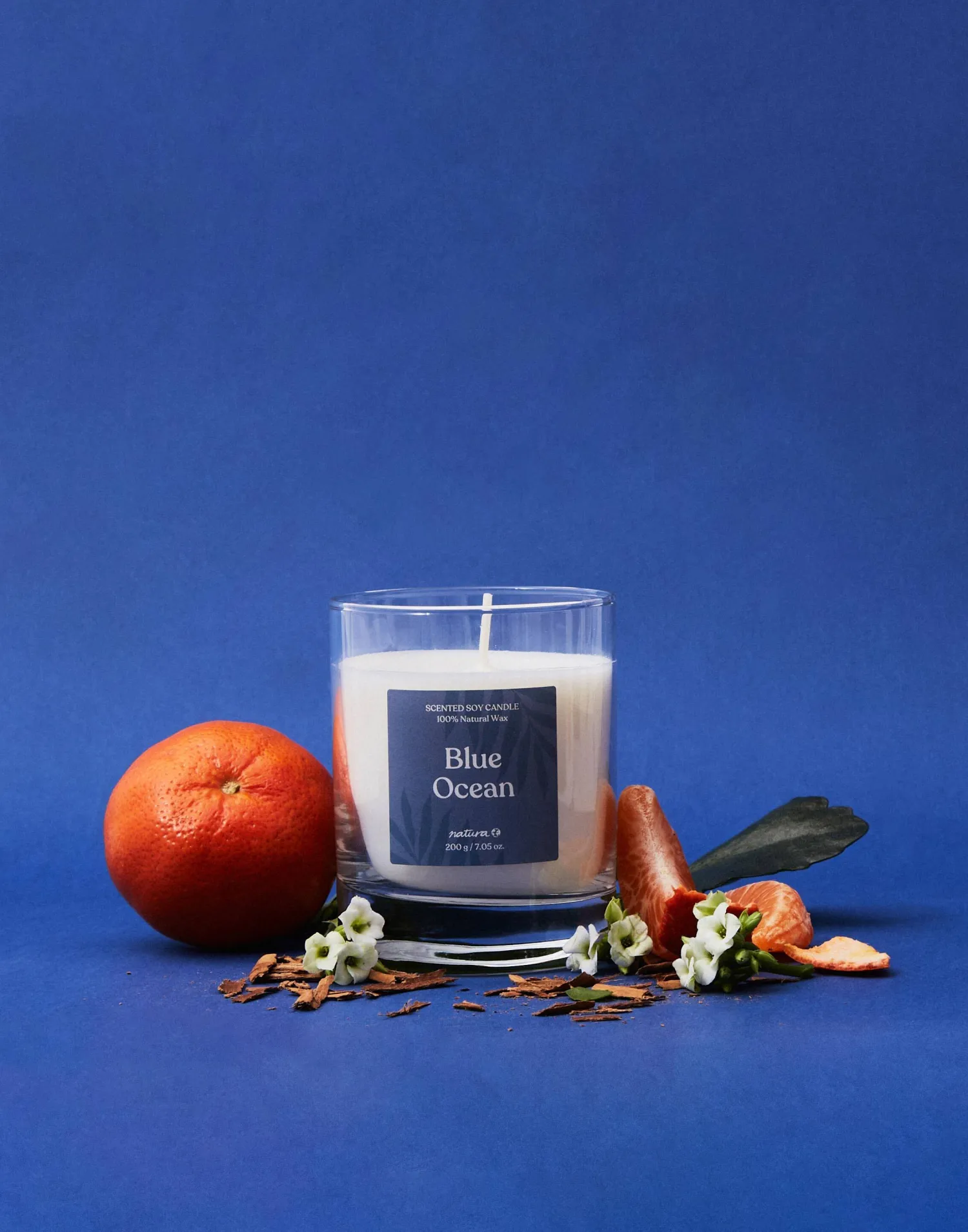 Vela aromática de cera vegetal, con mecha de algodón y tarro de cristal.