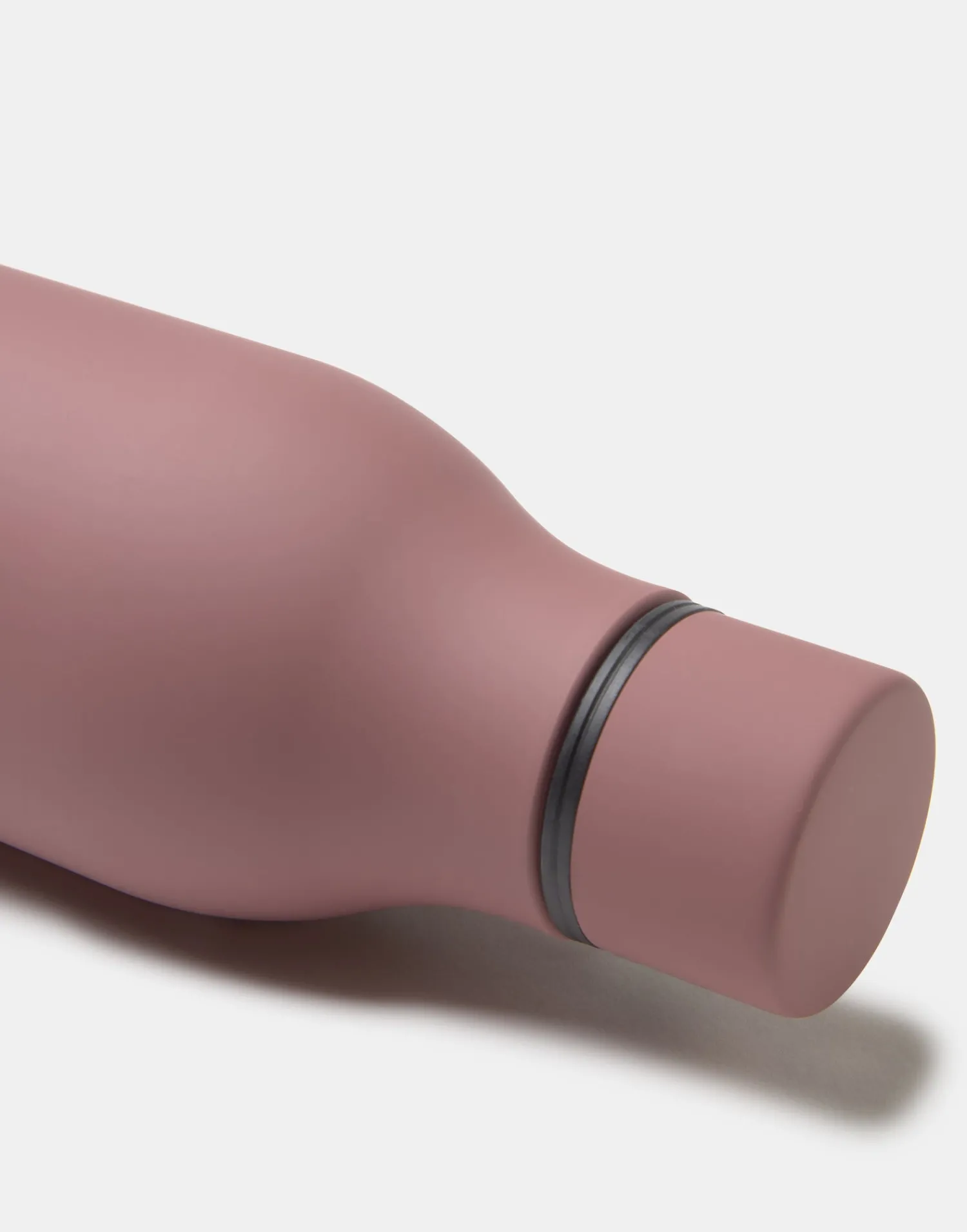 Botella de acero inoxidable con capacidad de 550 ml y asa para facilitar su transporte.