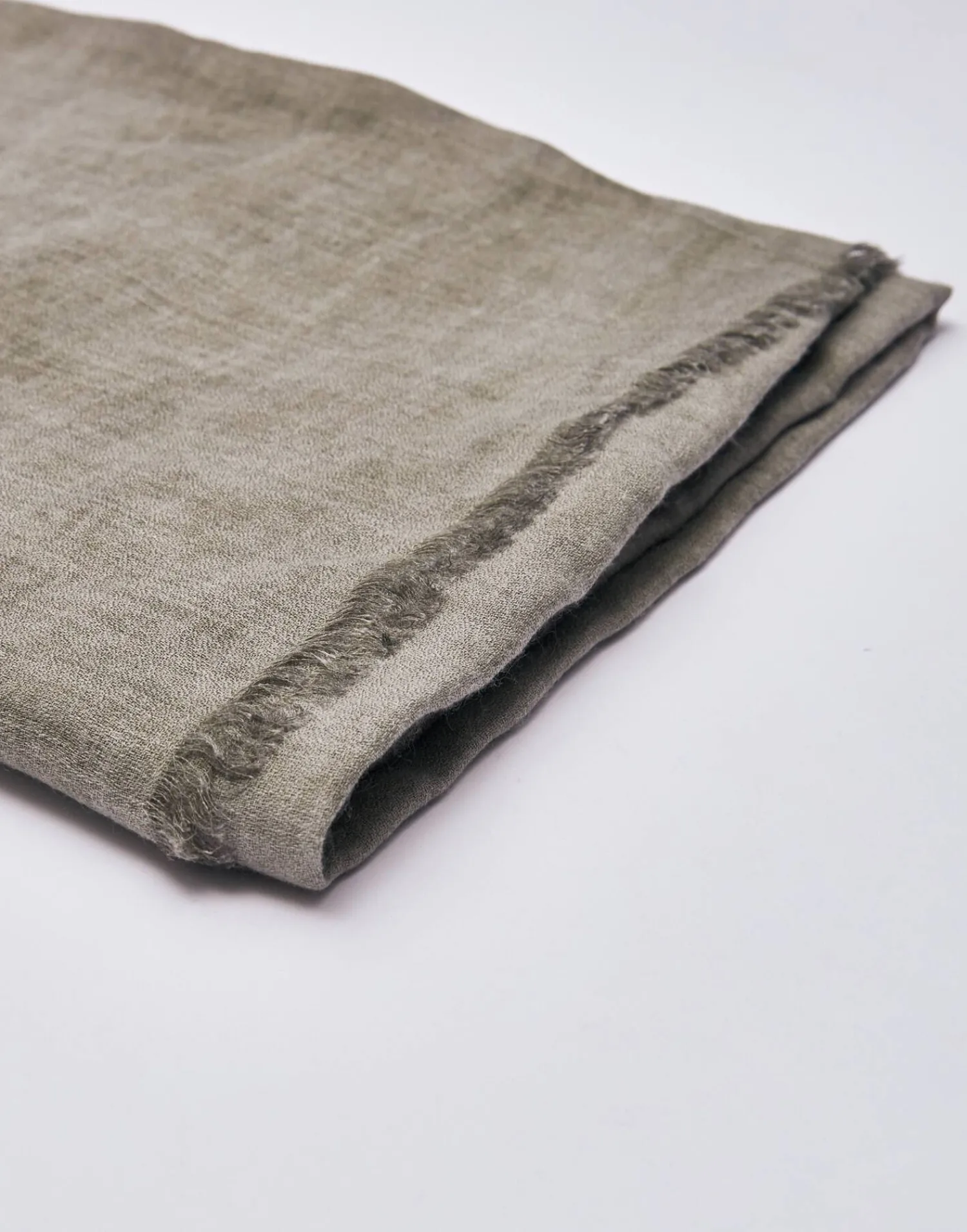 Pañuelo liso en mezcla de algodón y viscosa con terminaciones deshilachadas.