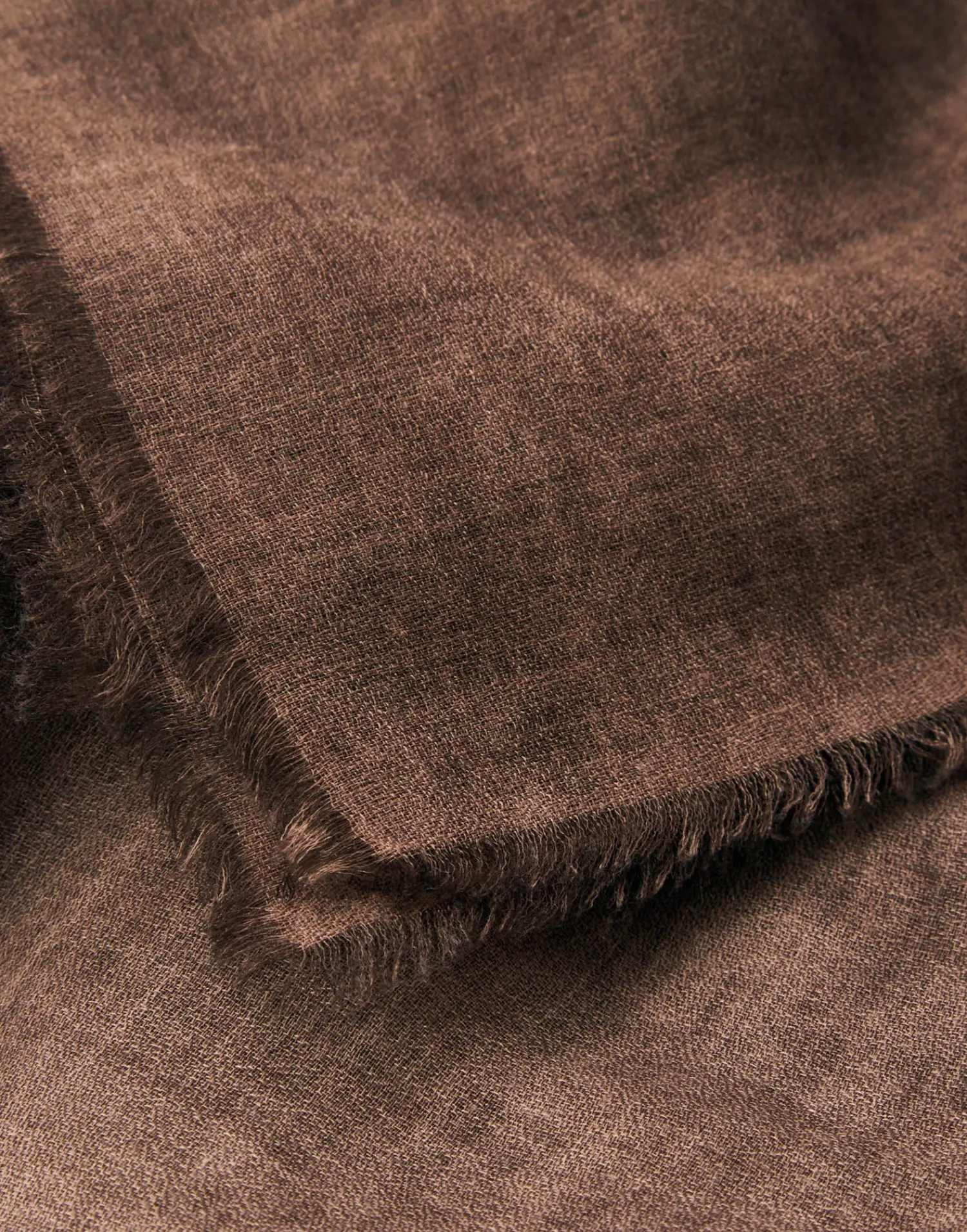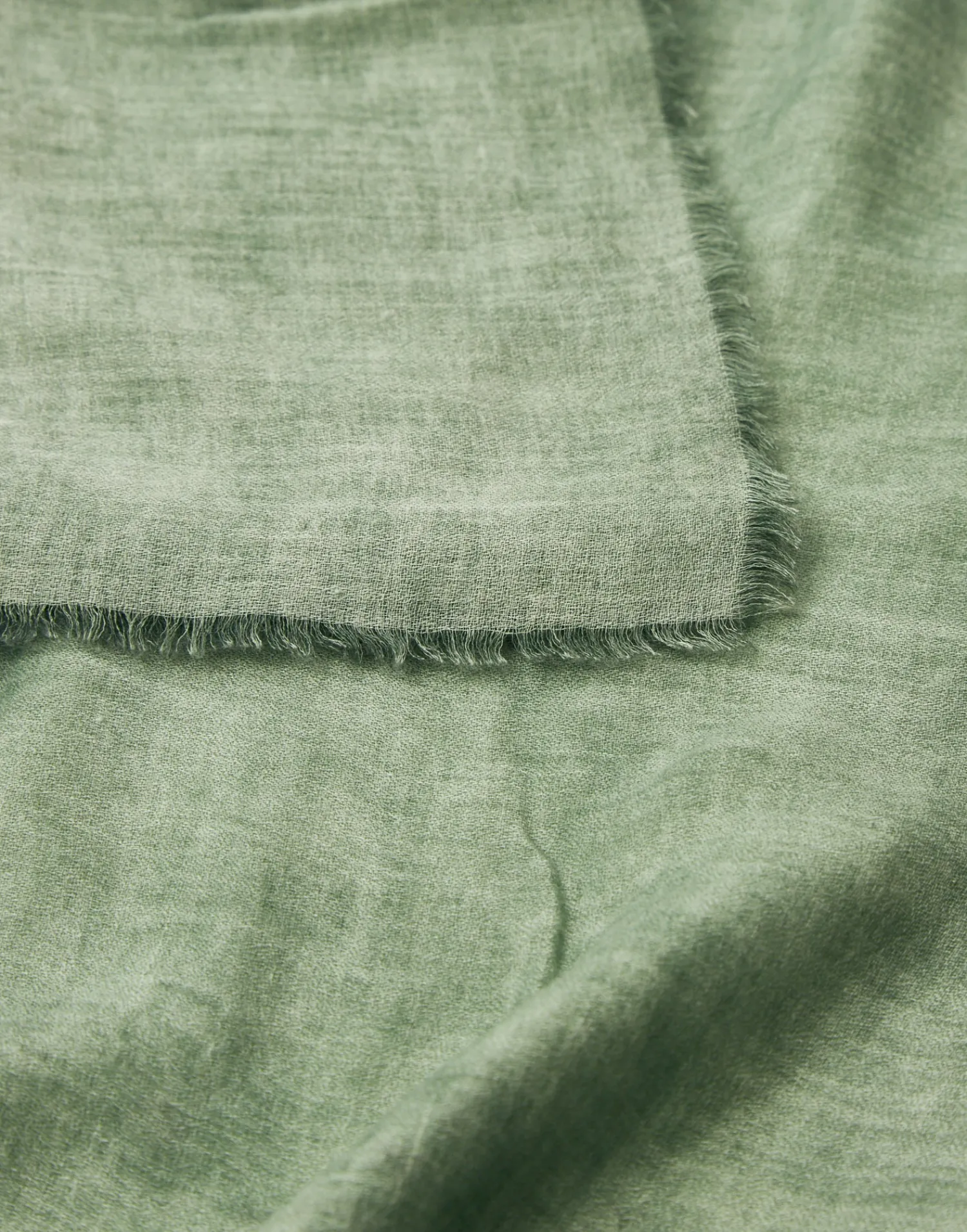 Pañuelo liso en mezcla de algodón y viscosa con terminaciones deshilachadas.
