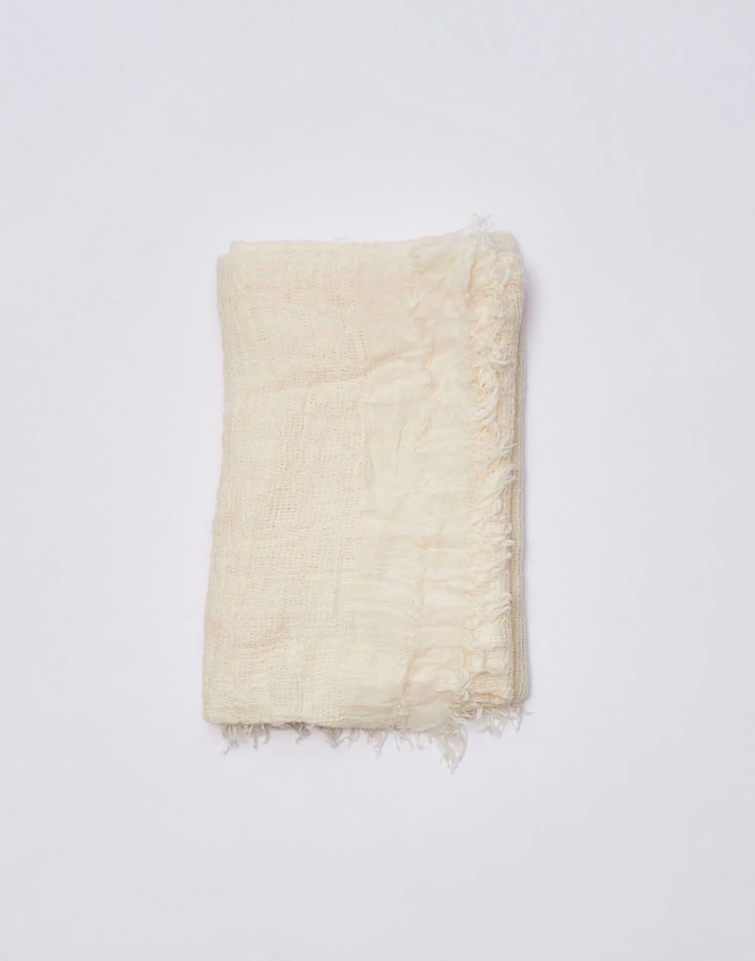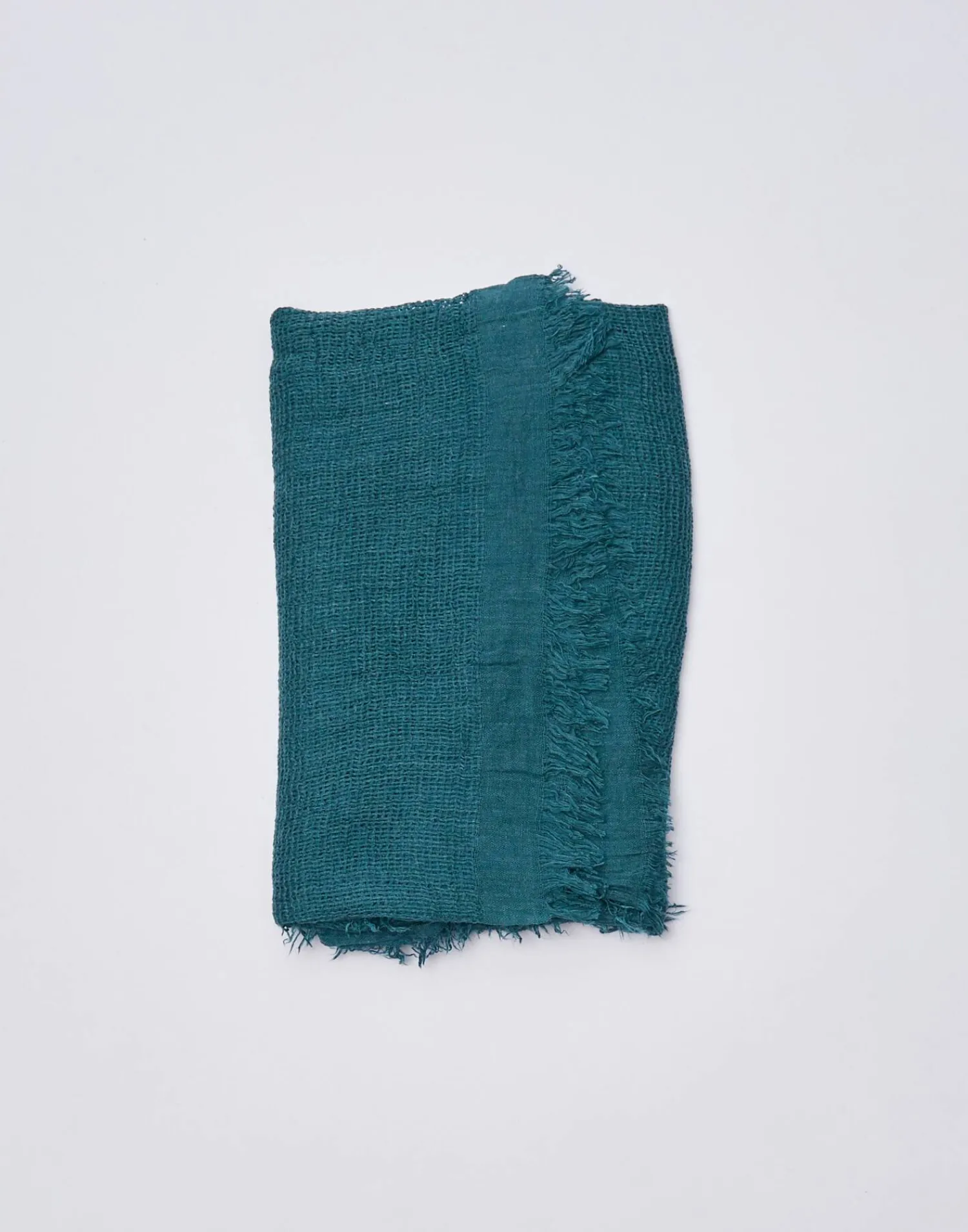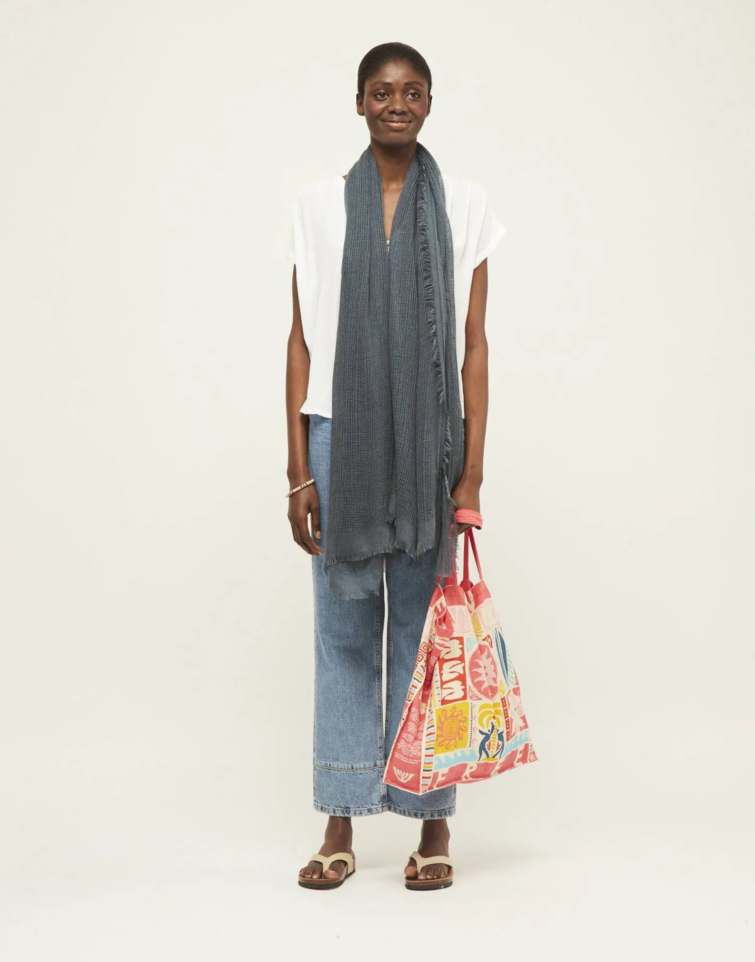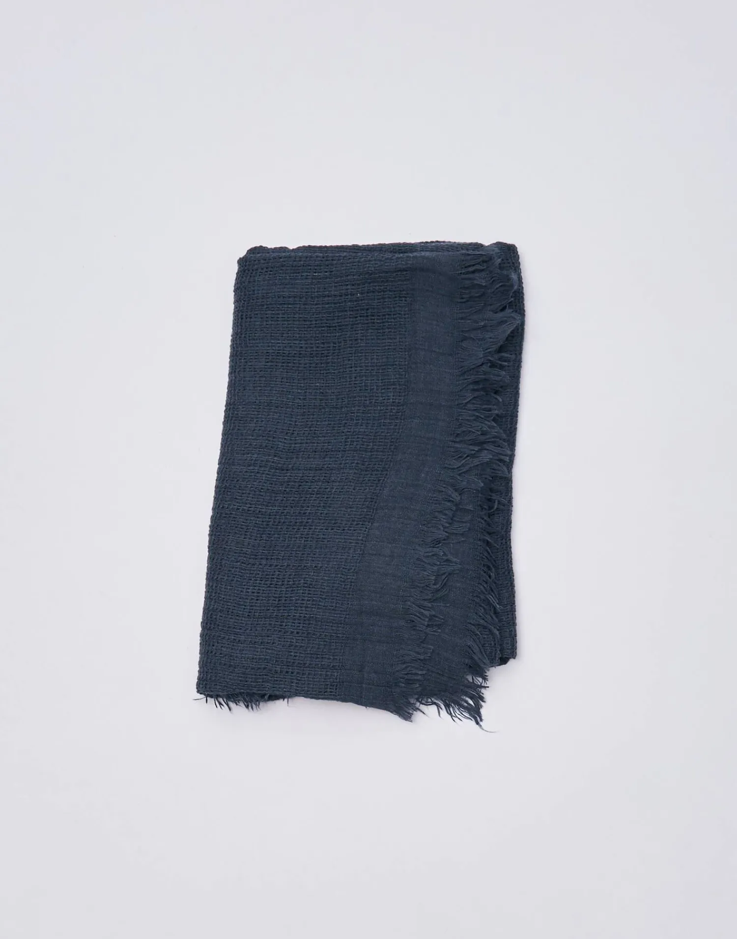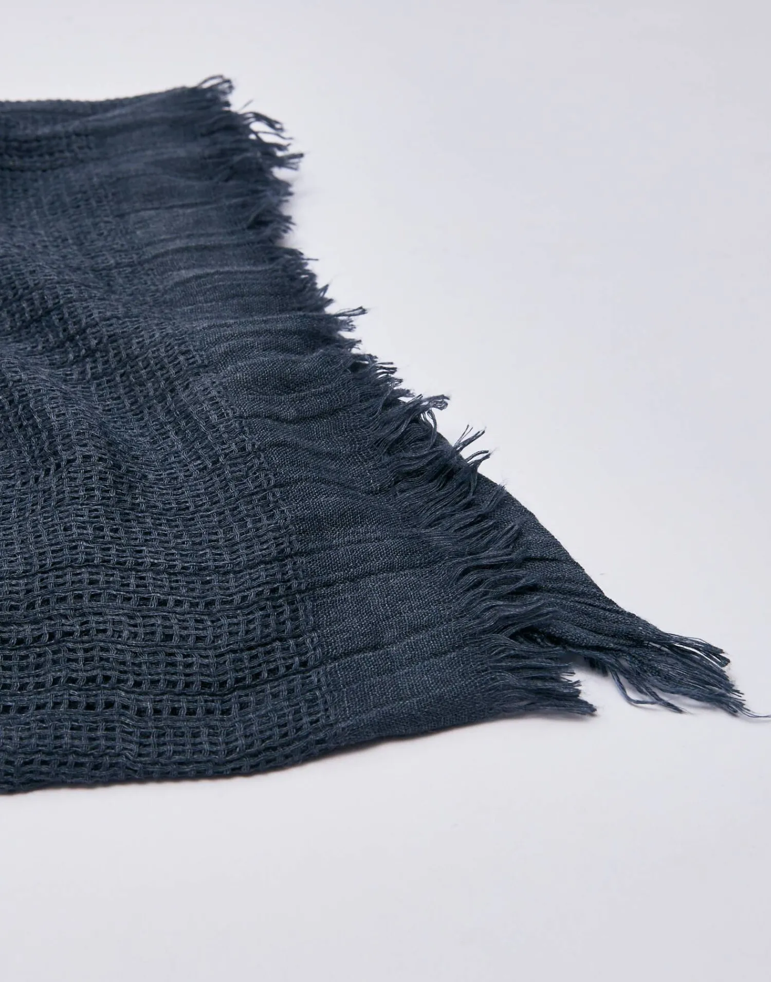 Pañuelo liso en mezcla de poliéster y viscosa con terminaciones deshilachadas.