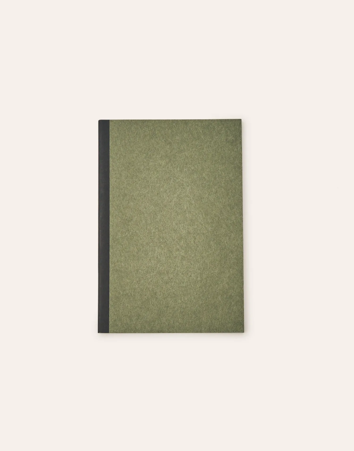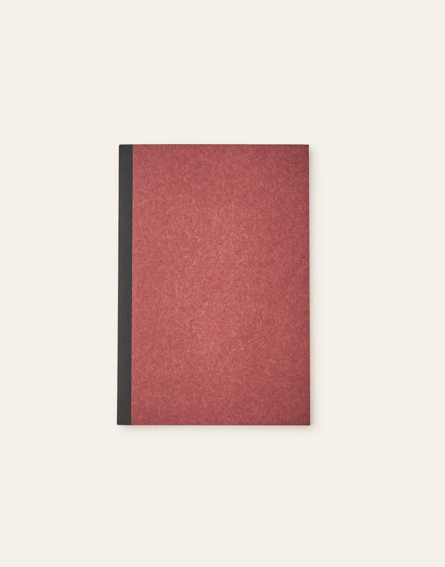 Libreta de tapa blanda con interior de páginas blancas a rayas.