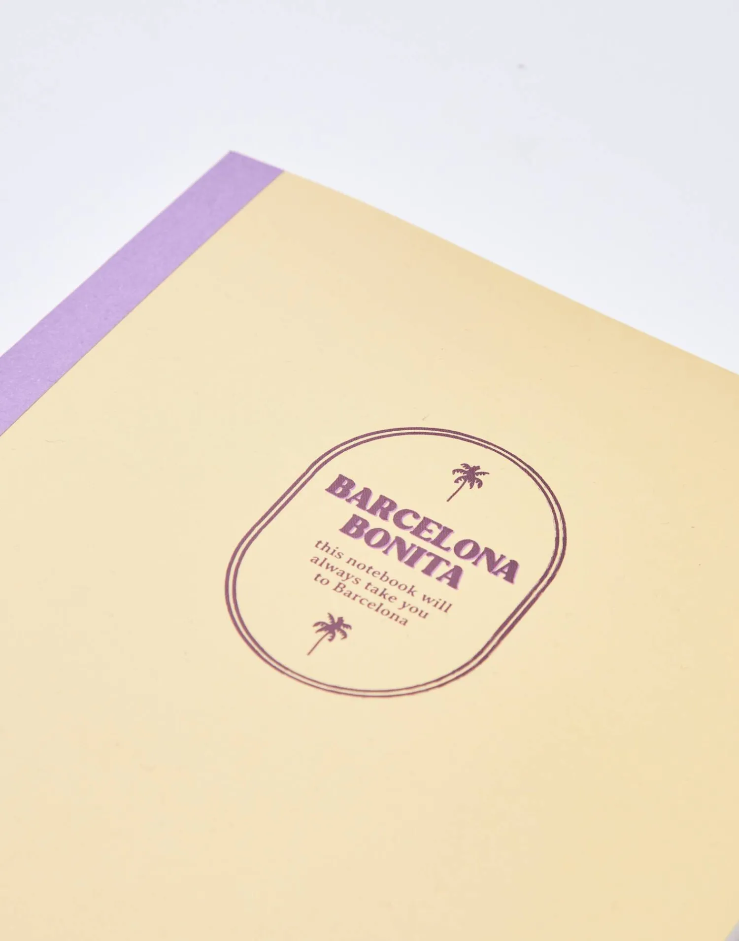 Libreta de tapa blanda con mensaje «Barcelona Bonita». Interior con 64 páginas lisas.