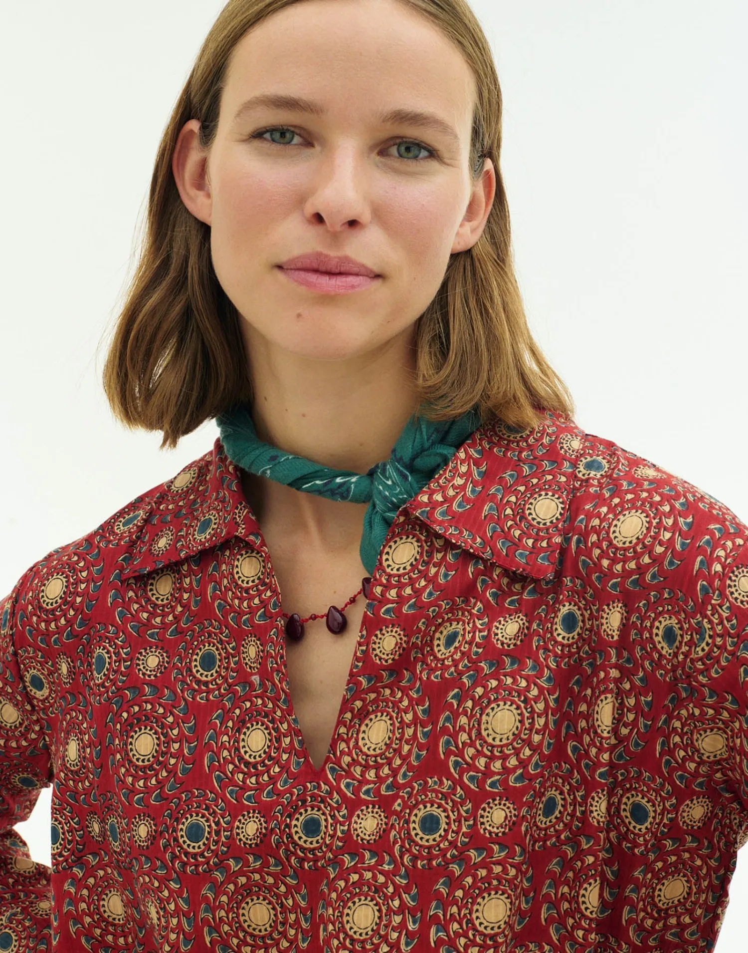 Pañuelo estampado cuadrado.