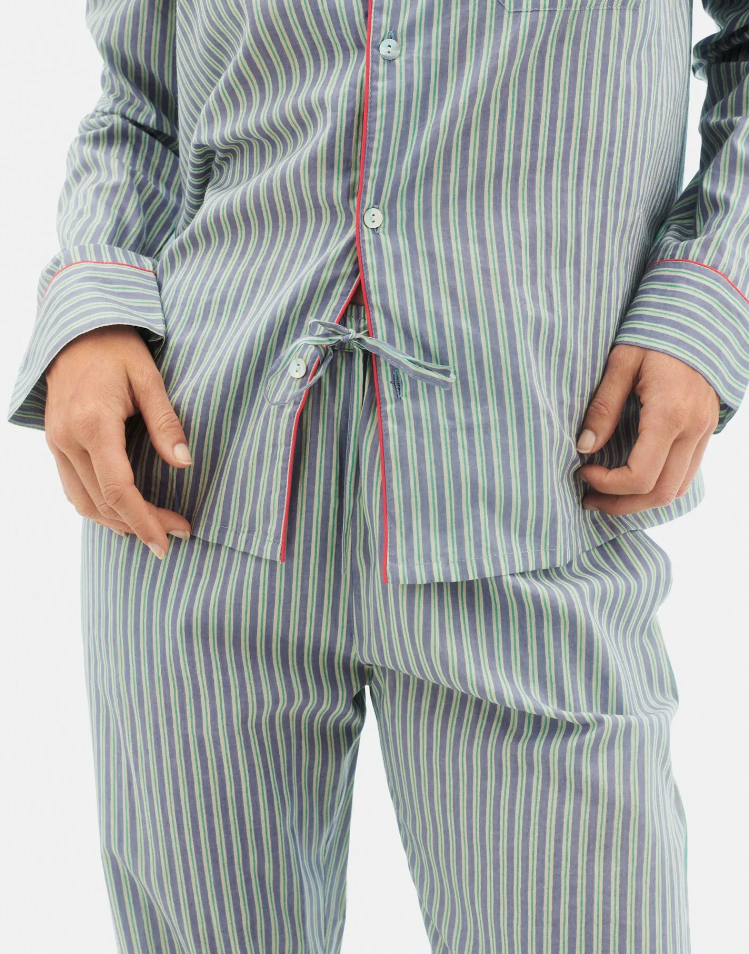 Set de pijama unisex compuesto por dos piezas: camisa de manga larga y pantalón largo.