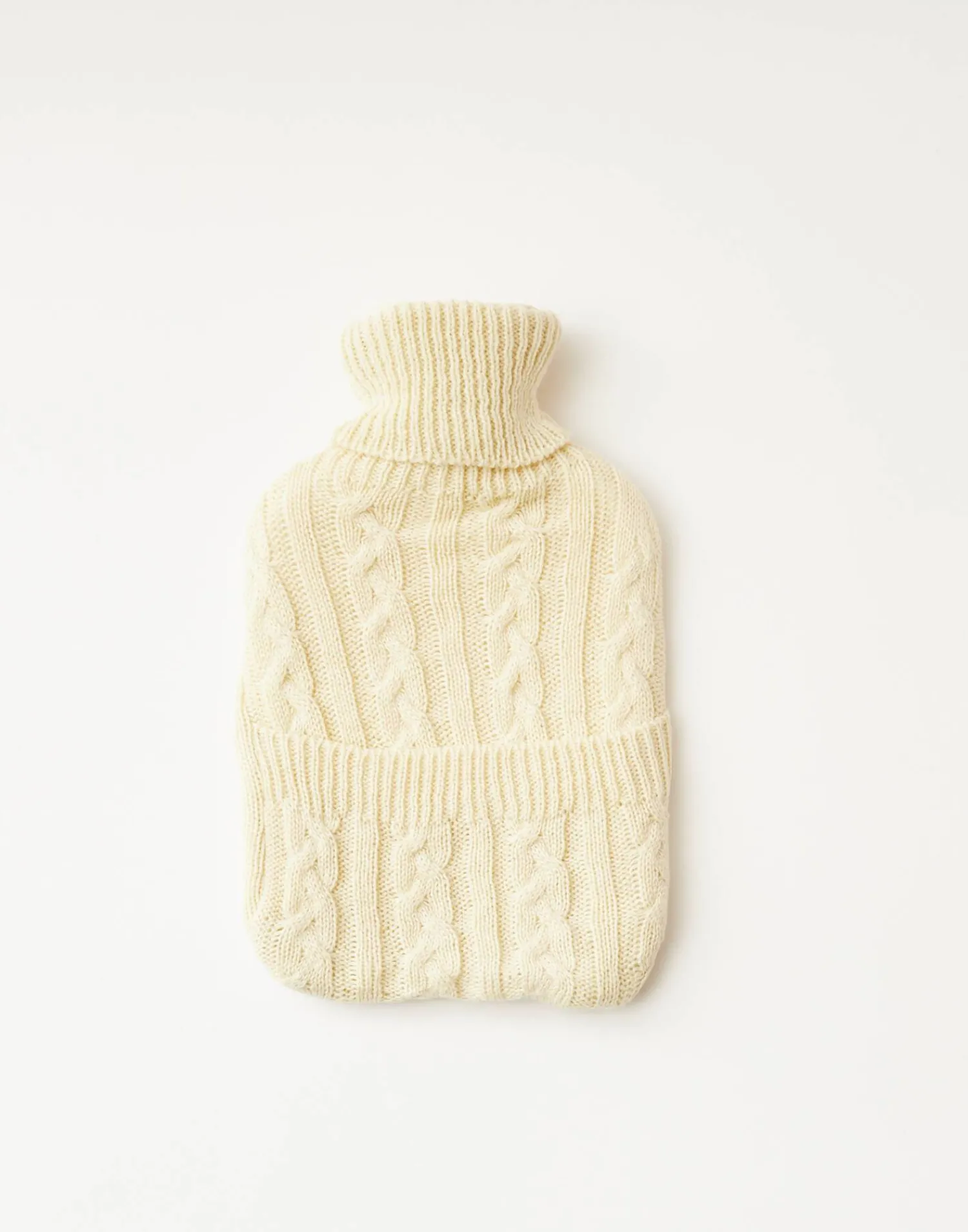 Set compuesto por una botella de agua caliente con capacidad de 2 litros y funda de punto trenzada con bolsillo y un par de calcetines a juego.