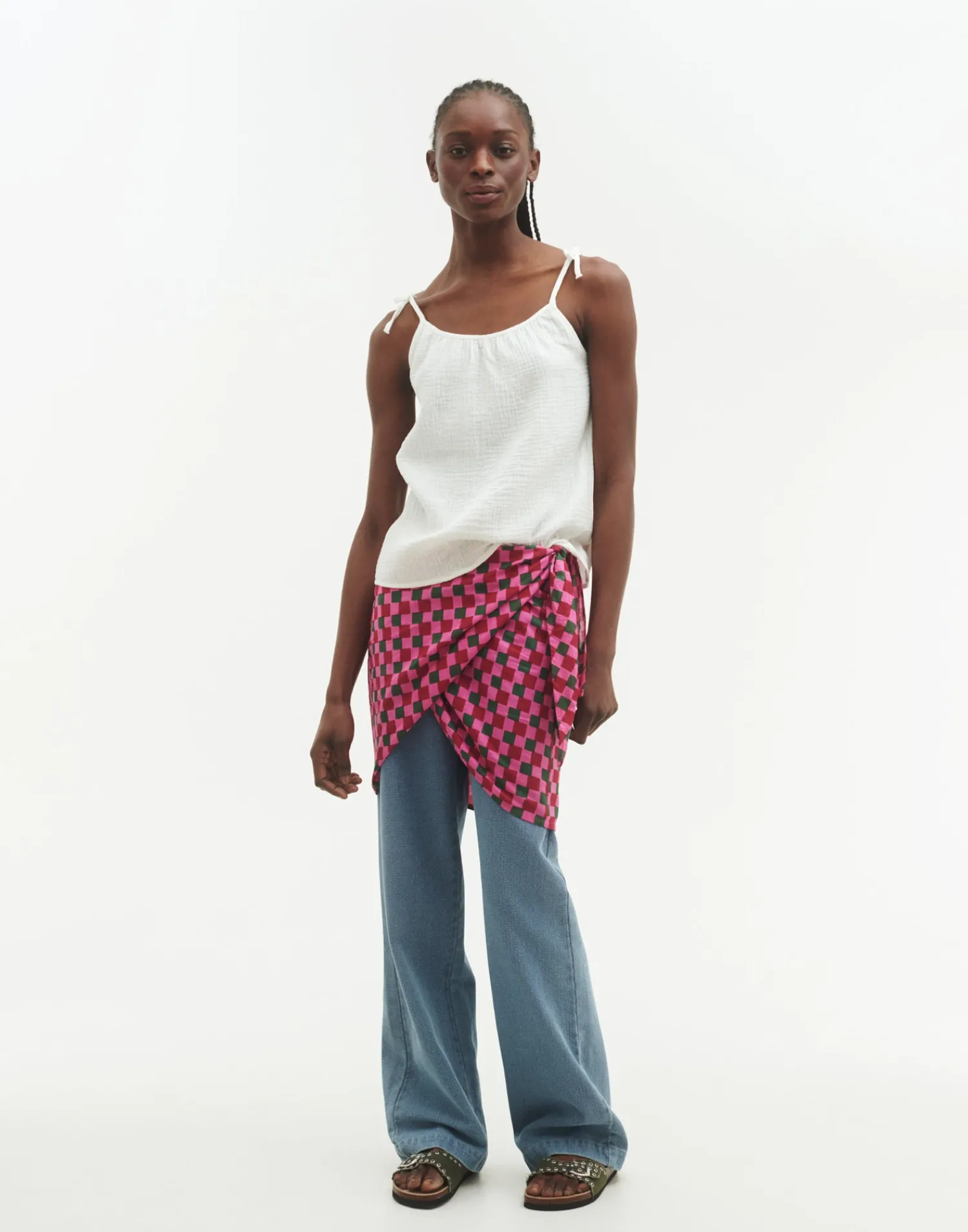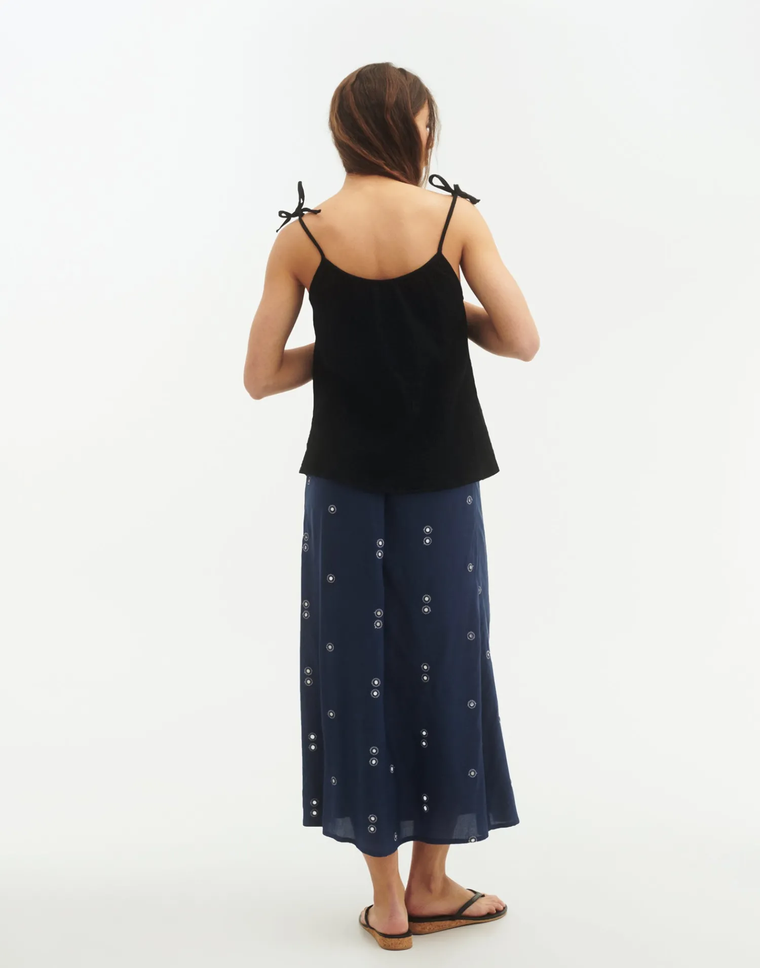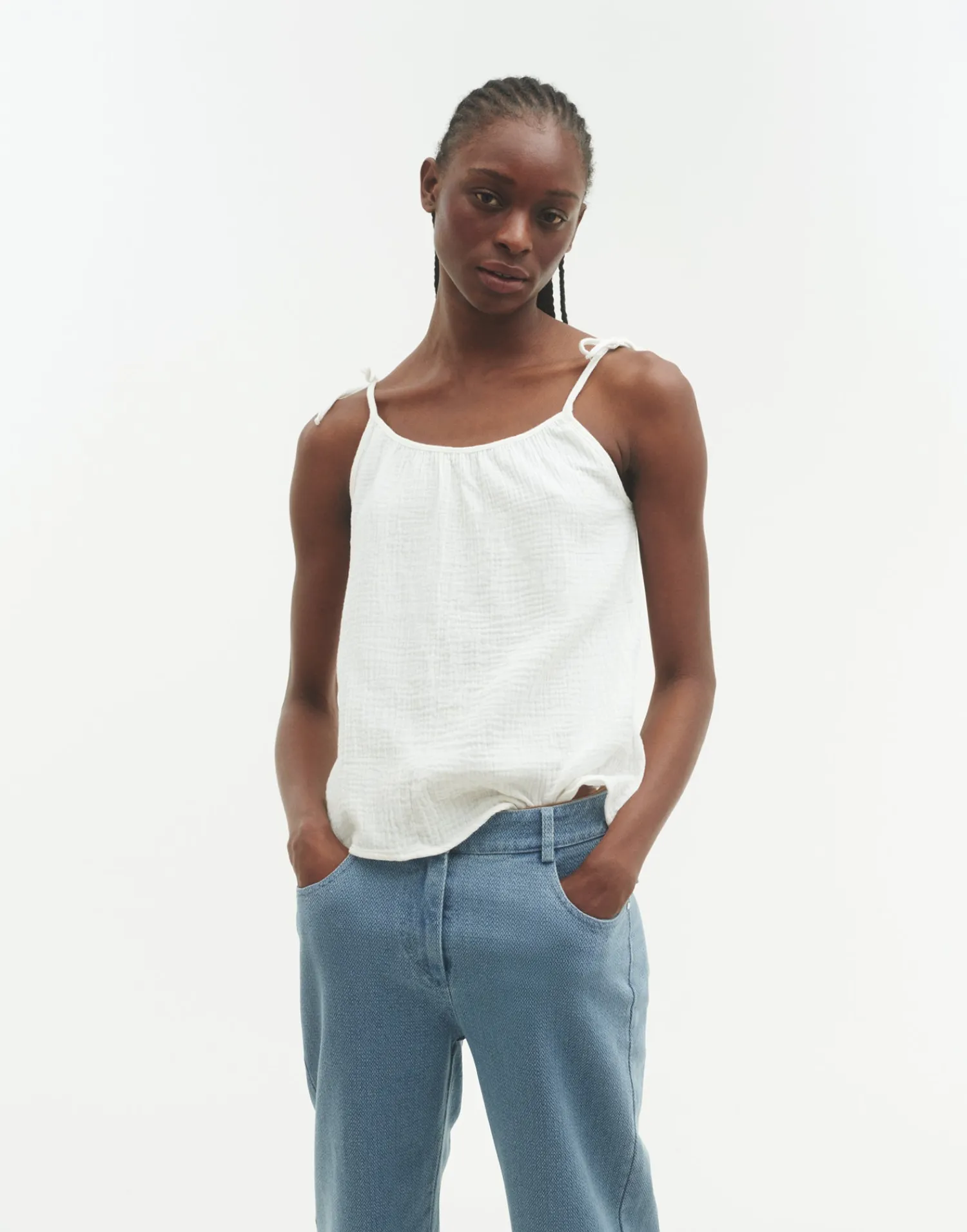 Top de algodón con tirantes finos ajustables mediante lazo.